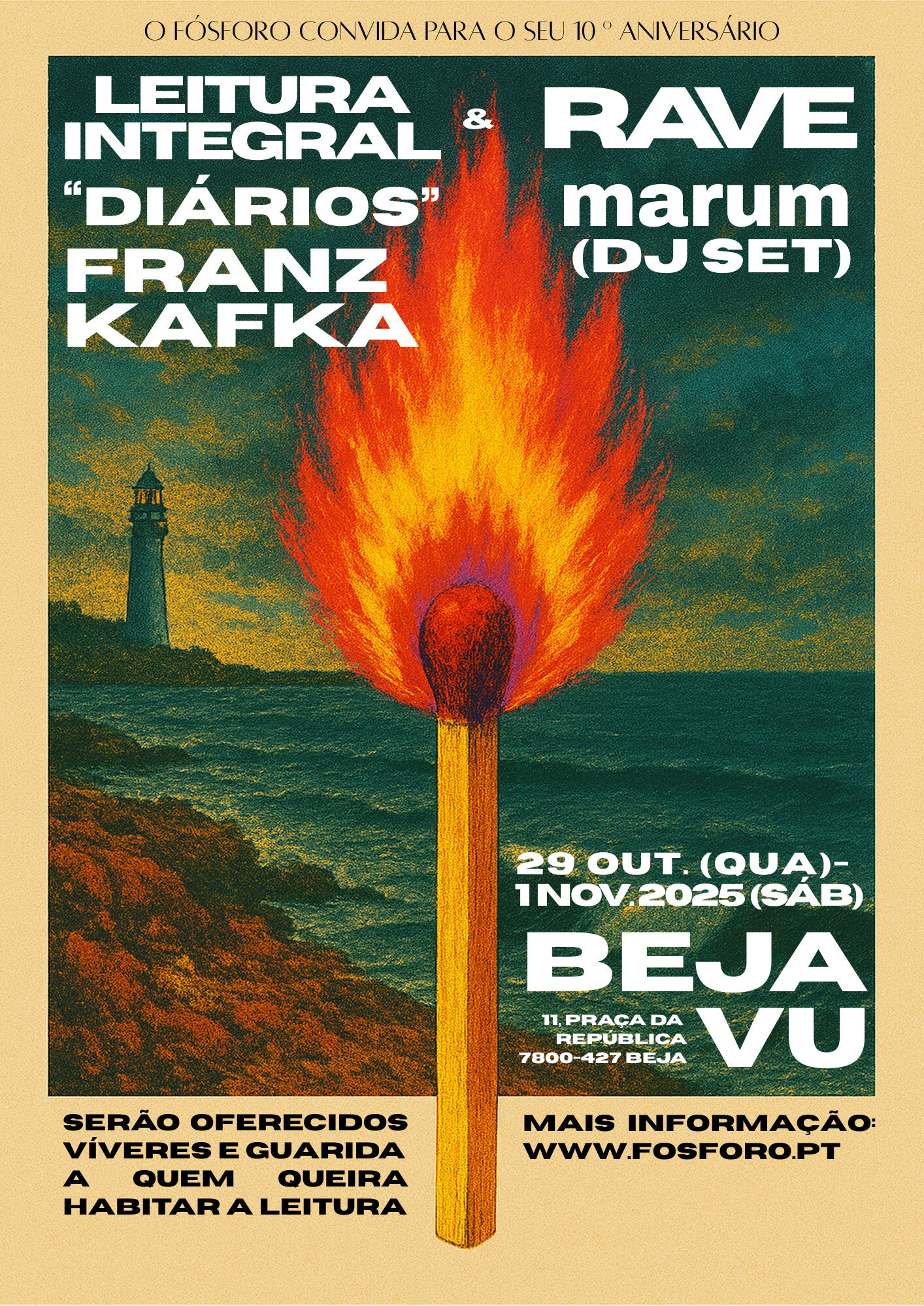A leitura decorrerá ao longo de 4 dias. Serão oferecidos víveres e guarida a quem a queira habitar. A entrada é livre.A obra será lida na sua edição portuguesa. Haverá exemplares disponíveis para quem a queira acompanhar em inglês.Ao final do quarto e último dia, sábado, 1 de Novembro, durante a leitura do décimo segundo caderno, serão acolhidas as paisagens sonoras de marum, que fechará a noite com um DJ Set.Nessa noite a entrada carece de um donativo consciente ao espaço.